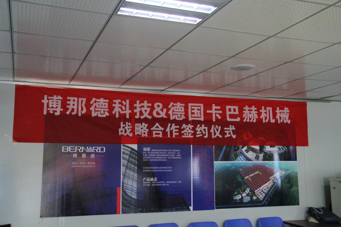 博那德科技位于海西国家级新区,致力于装配式钢结构建筑体系的研发生产,目前一期项目3栋厂房建设基本完成。在项目厂房建设完成后,为了学习国内先进钢结构制造厂家生产工艺,博那德科技将陆续引进国际领先的钢结构加工设备。2017年4月26日,博那德科技与德国卡巴赫机械强强联合,签下战略合作协议,引进首批国外钢结构加工设备。