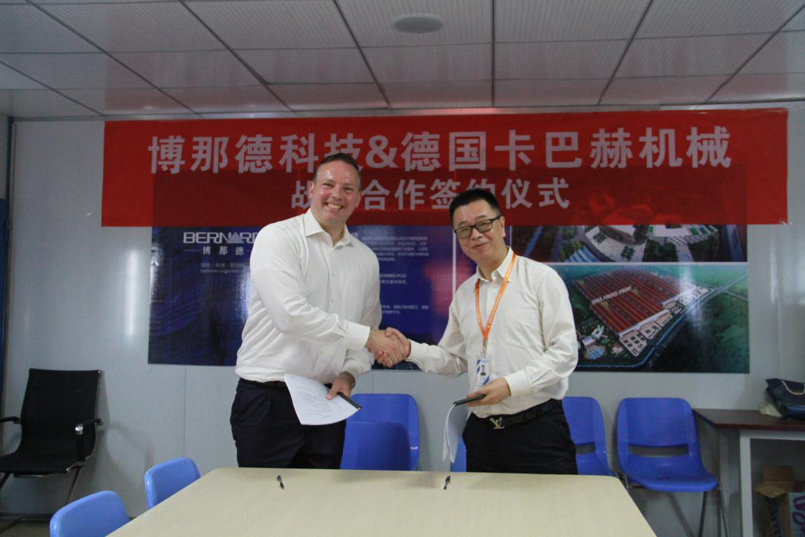 参观结束后,博那德科技与德国卡巴赫机械召开合作会议,共同商讨合作事宜,最终达成双方认可的合作协议。会议上,举行了博那德科技与德国卡巴赫机械战略合作签约仪式。由德国KALTENBACH GmbH +Co.KG 集团副总裁Matthias Rummel与博那德科技总经理张羽分别作为合作双方代表签订协议。
