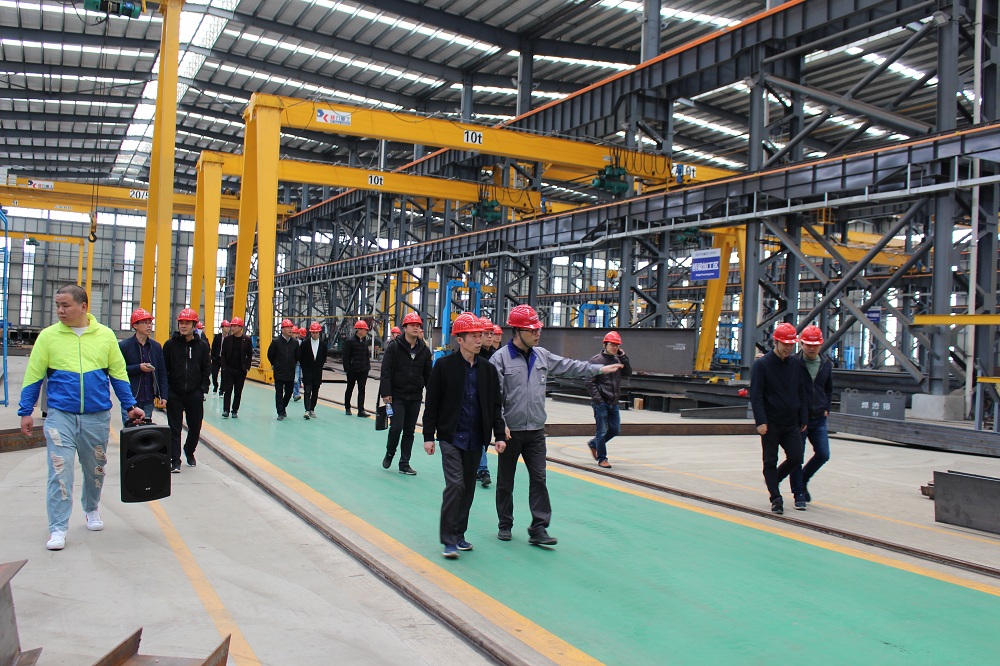 考察组一行深入博那德装配建筑产业园区生产车间,了解生产线运行情况,先后参观了室内生产车间自动化生产流水线、室外桥梁大构件生产区、公司及产业园生产管理办公区等。参观过程中,博那德总经理张羽向考察组一行详细介绍了博那德公司的发展现状、博那德装配建筑产业园区的发展概况、桥梁墩柱及盖梁预制件生产及吊装工艺等。