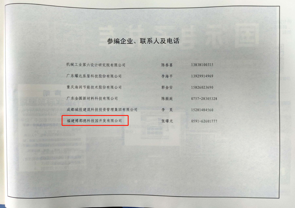 博那德科技作为首批国家装配式建筑产业基地 ,坚持自主创新,在装配式钢结构行业拥有丰富经验和领先技术,截止6月1日,博那德科技共参编图集已有6项,分别是:《钢结构停车楼(坡道式)设计图集》、《钢筋桁架混凝土楼板设计图集》、《装配式钢结构建筑工程总承包管理标准》、《钢网架结构设计》、《钢结构施工图参数表示方法制图规则和构造详图》、《应急发热门诊设计示例》。