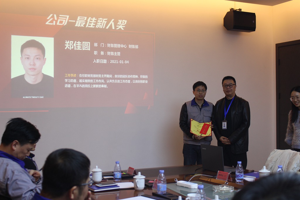 最后,为树立榜样,表彰先进,总经办领导给2021年度公司优秀员工进行了颁奖,希望他们在今后工作中一如既往,再接再厉,再创佳绩,号召大家学先进、赶先进,共同营造公司积极向上的工作氛围,为全面完成来年的经营目标而奋斗!
