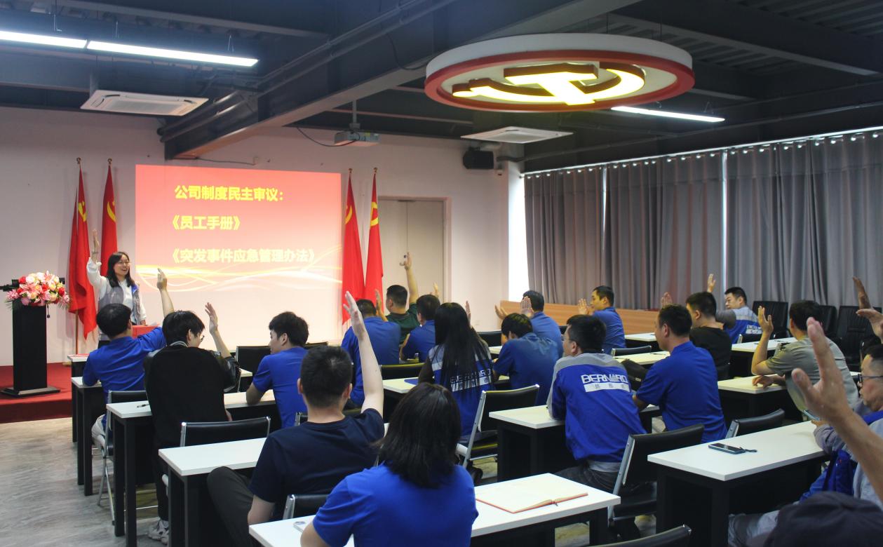 ▲图为工会代表高票通过《员工手册》、《突发事件应急管理办法》等公司制度