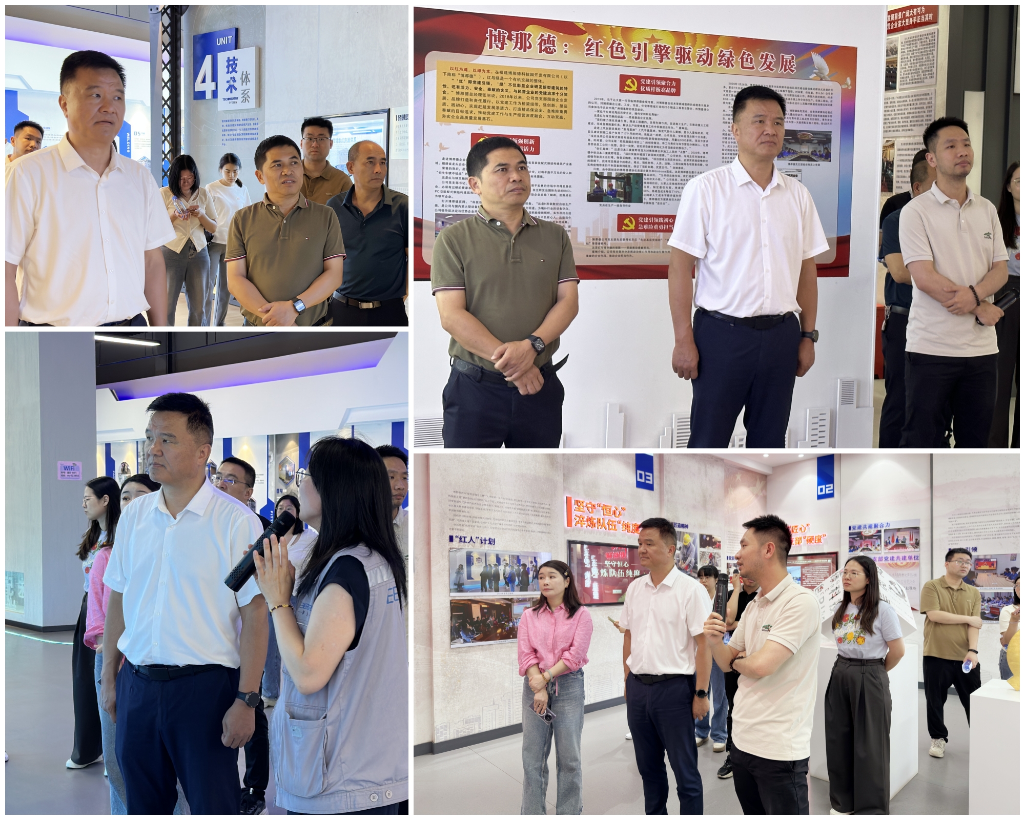 调研组实地考察了企业展厅和党群活动服务中心,深入了解企业发展历程,重点听取"五心五度"党建工作法创新实践汇报,并详细了解党群服务中心及党员职工活动场所建设使用情况,对博那德"红色引擎驱动绿色科技"的特色党建模式给予高度评价。