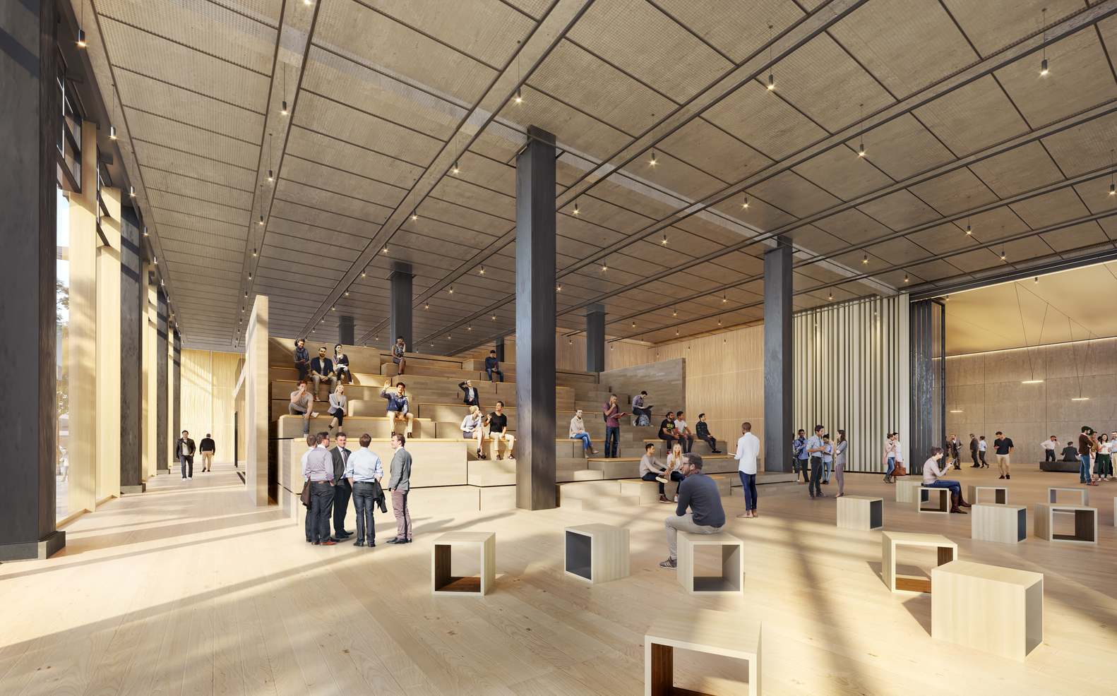 项目面积 67万平方英尺(约6.2万平方米), SOM 的方案特点是外露钢筋和核心结构的通高落地窗 ,最大限度地利用自然光和开阔的空间。 设置在一个30英尺x30英尺(9 m x 9m)的网格上,从地板到天花板高度14英尺(4.2m),内部提供灵活的协同工作和活动空间,有一个户外健身平台、咖啡厅、酒吧、图书馆和200个停车位。