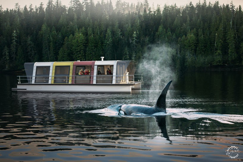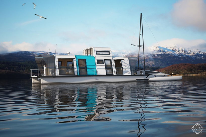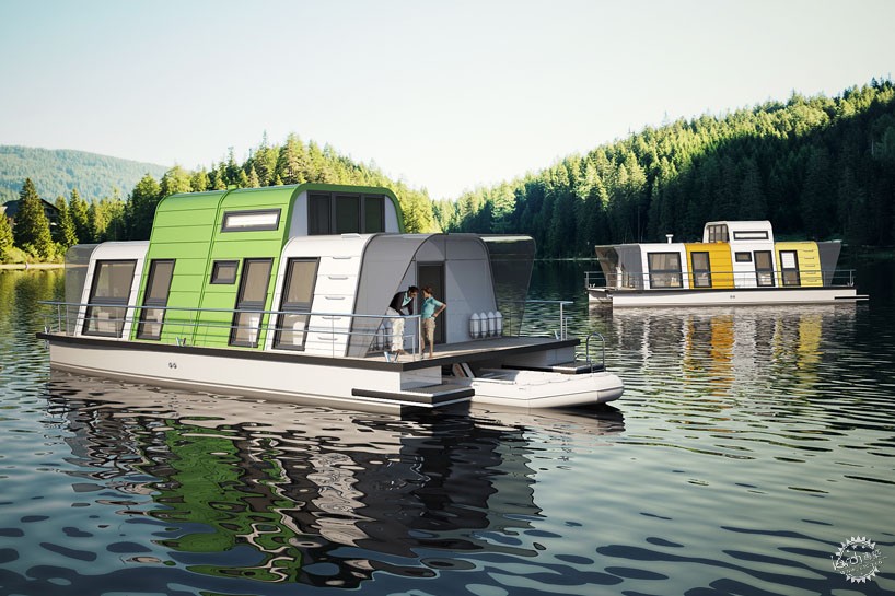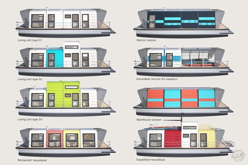 这艘游艇由不同的尺寸单元组合而成,单元尺寸为2.4米宽、2.3米高,此外,设计师还设计了3.5米高的单元类型。