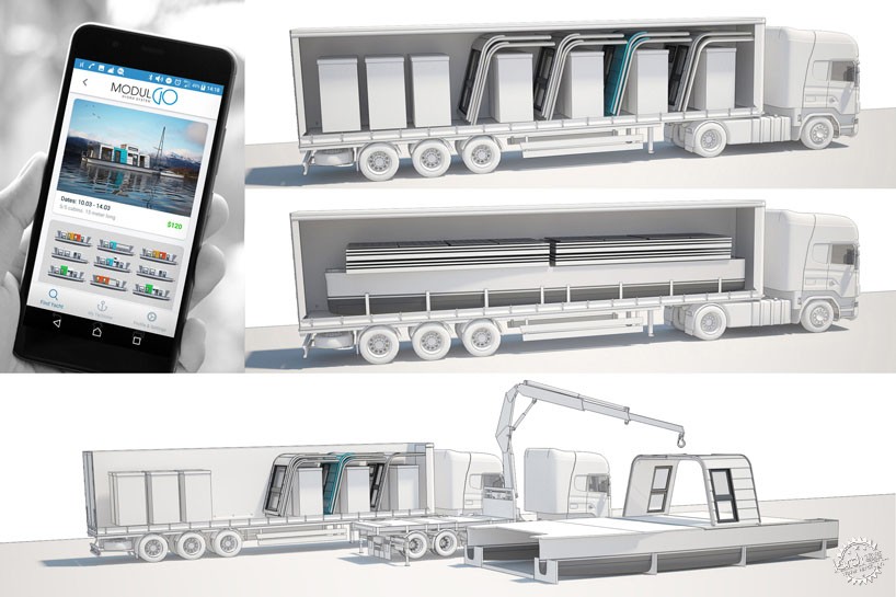 “Modul GO”游艇配备了电动马达和太阳能电池板,这个系统可根据游艇模式及其功能选择电动马达的动力。这艘游艇的设计方式可以通过两个轨道运输构件,并在2天内由4人快速组装。